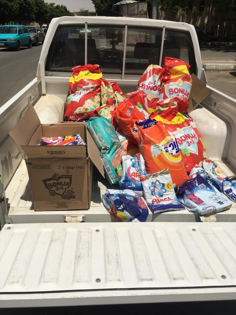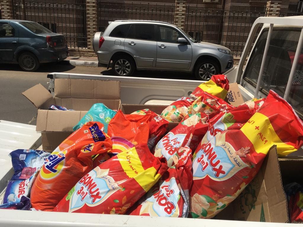وقد أسفرت الحملة عن ضبط أحد المخابز لتصرفه فى عدد ٦ شكاير دقيق مدعم بالإضافة إلى التحفظ على ٢٠٠ كيلو منظفات منتهية الصلاحية.