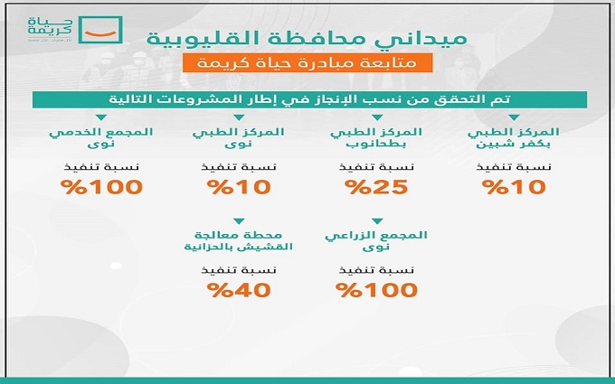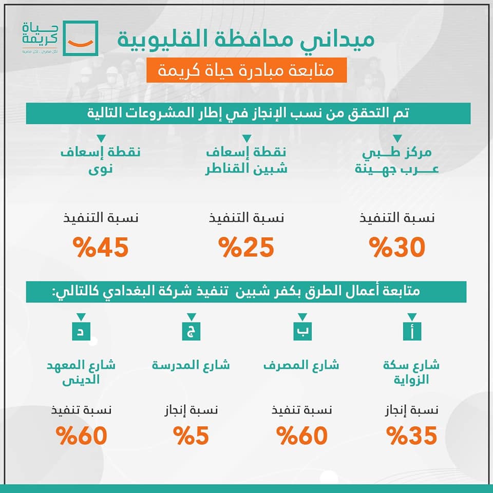 - المشروعات تتم في العديد من القطاعات، كالقطاع الطبي ونقطتي الإسعاف بشبين القناطر ونوى، إلى جانب مشروعات الطرق وتطويرها، والمجمعات الخدمية.