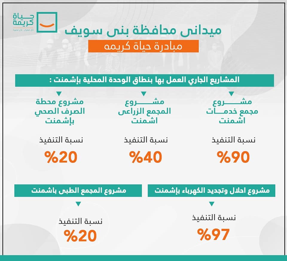 - في إطار العمل المتواصل للمبادرة الرئاسية حياة كريمة، تم تنفيذ عدد كبير من المشروعات في محافظة بني سويف.