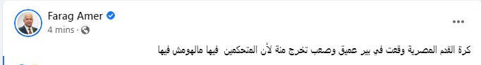 وأضاف فرج عامر: "كرة القدم المصرية وقعت في بير عميق وصعب تخرج منة لأن المتحكمين فيها مالهومش فيها".