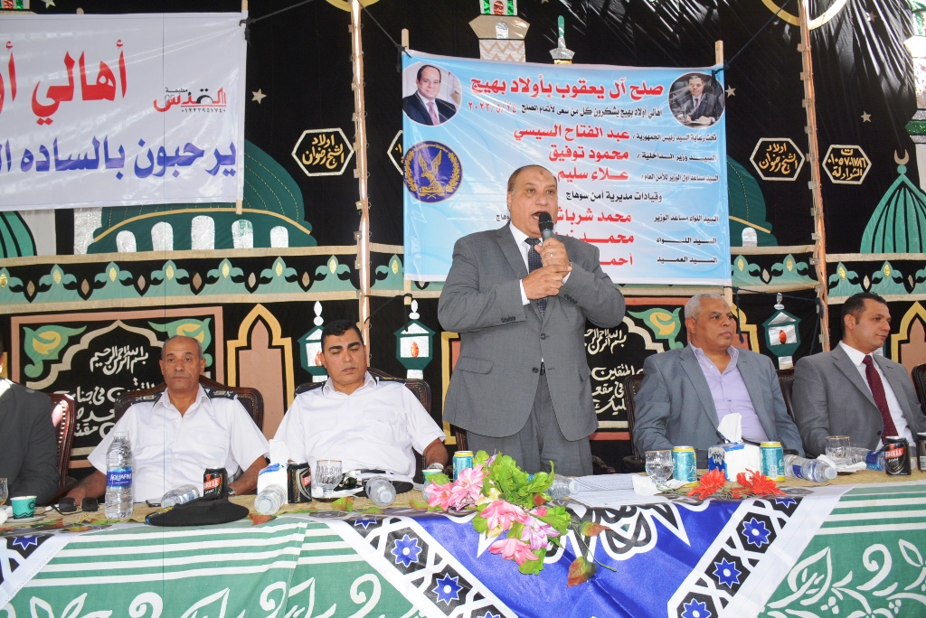 أناب اللواء طارق الفقي محافظ سوهاج، اليوم، اللواء ضياء الدين أبو العزم السكرتير العام المساعد لمحافظة سوهاج لحضور مراسم الصلح بين أبناء العمومة " آل يعقوب " وذلك بقرية أولاد بهيج بمركز جرجا، بحضور اللواء مصطفى محمد حكمدار مديرية أمن سوهاج، واللواء عصام جمال نائب مدير الأمن لقطاع الجنوب، والعميد على العماري رئيس مباحث مديرية أمن سوهاج، والنائب ياسر نصر عضو مجلس النواب، والنائب عبد الحكيم العش عضو مجلس الشيوخ، وعاطف الصمطي رئيس مركز ومدينة جرجا، والشيخ محمد زكي الأمين العام للدعوة الإسلامية بالأزهر الشريف، والقس كاراس دولف ممثلا للكنيسة، وعدد من القيادات الأمنية والتنفيذية وعمد ومشايخ وأهالي القرية والقرى المجاورة.