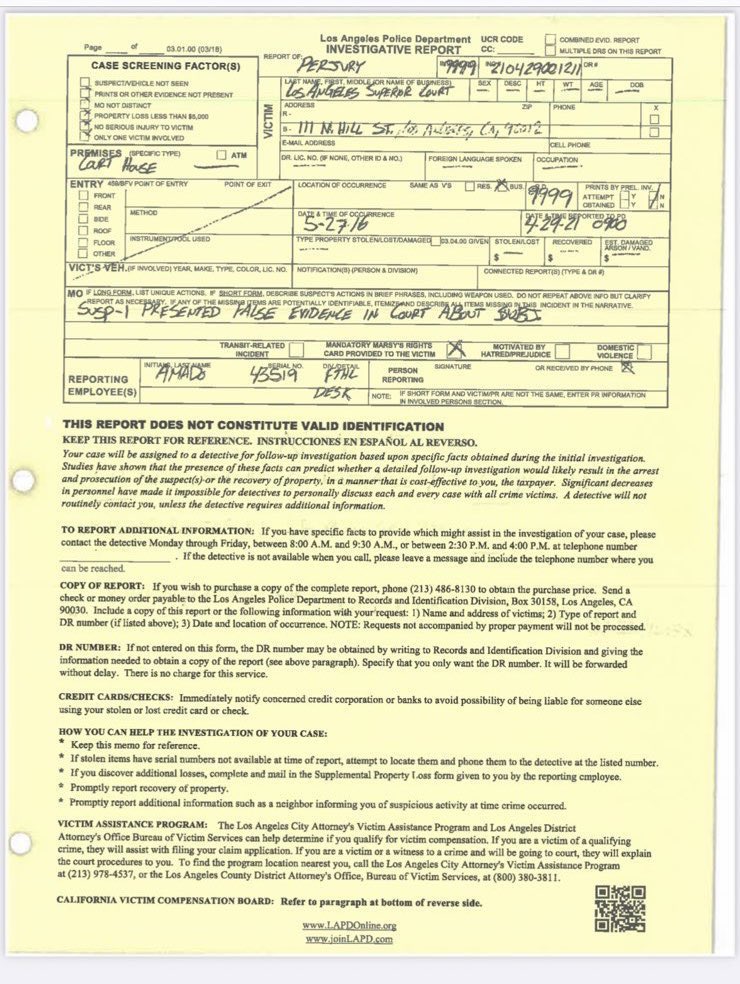 أصدرت دائرة شرطة ولاية لوس أنجلوس الأمريكية، مستندًا رسميًا بخصوص شهادة الزور التي ارتكبتها آمبر هيرد خلال حادثة 27 مايو 2016.