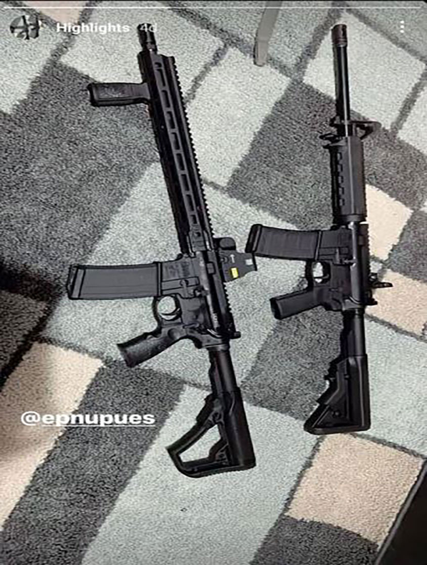 وتظهر الصور أن الفتى كان مهتما بالأسلحة، حيث كان ينشر على خاصية "ستوريز" عبر "إنستجرام" صورا لأسلحة رشاشة وذخائر بحيازته.