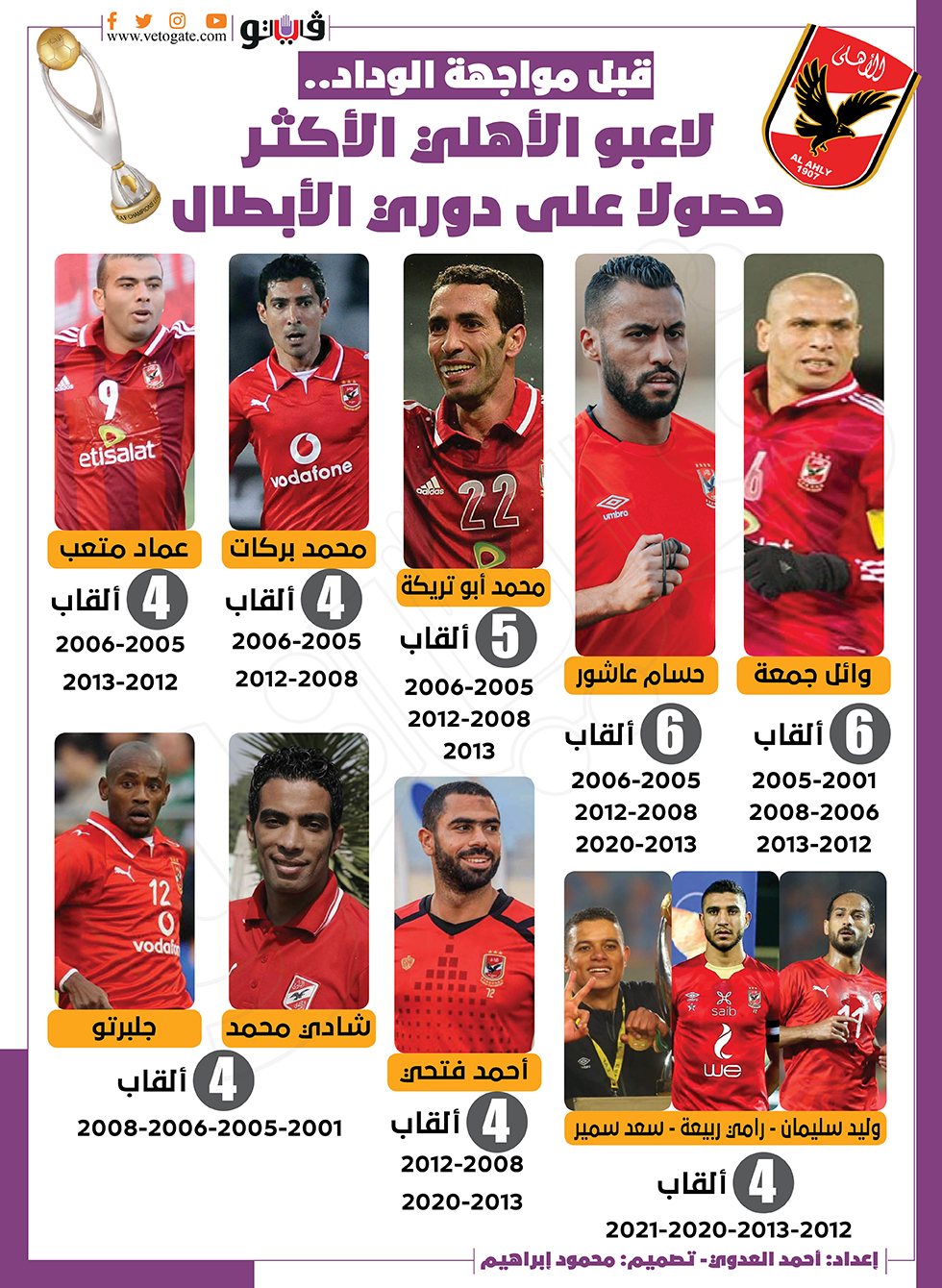 قبل مواجهة الوداد.. لاعبو الأهلي الأكثر حصولا على دوري الأبطال | إنفوجراف السبت 28/مايو/2022 - 06:30 م 5/28/2022 6:30:52 PM وائل جمعة أحمد العدوي شارك طباعة 18 حجم الخط شارك طباعة الأهلي اخبار الأهلي اخبار الرياضة دوري أبطال أفريقيا الاهلي اليوم الوداد المغربي