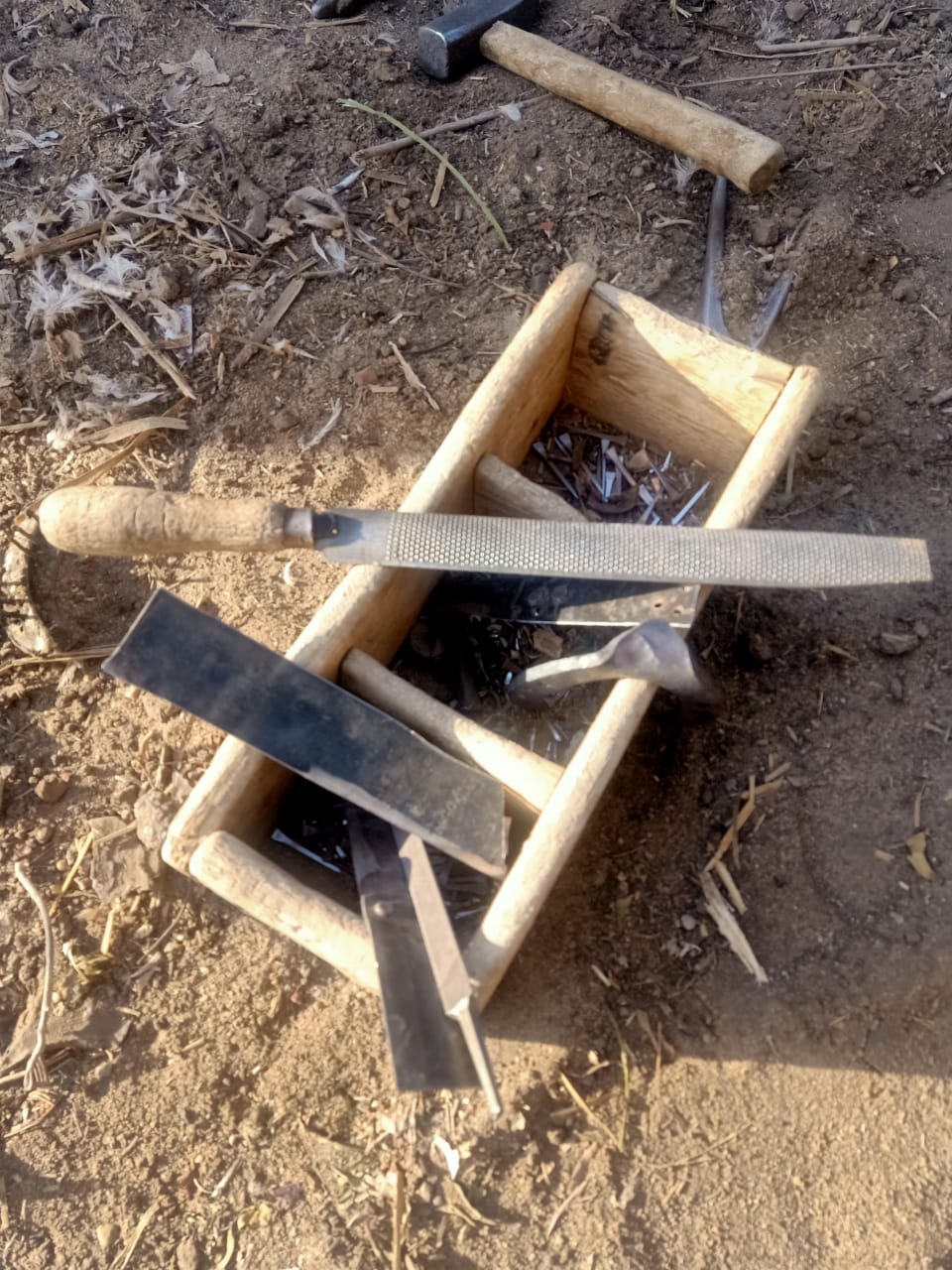 ويستخدم البيطار أدواته التي يتنقل بها من مكان لمكان وهي عبارة عن شاكوش وسنبك وكماشة وكفة ومبرد وريشة قص حافر.