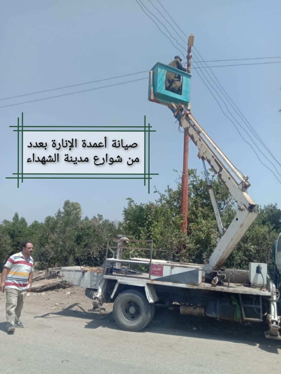 وفى مدينة الشهداء، واصلت الوحدة المحلية جهودها في متابعة أعمال الصيانة الدورية لكشافات أعمدة الإنارة بطريق العراقية- زاوية الناعورة وعزبة سيدي صالح وشارعى الكنيسة وكمال النجار.