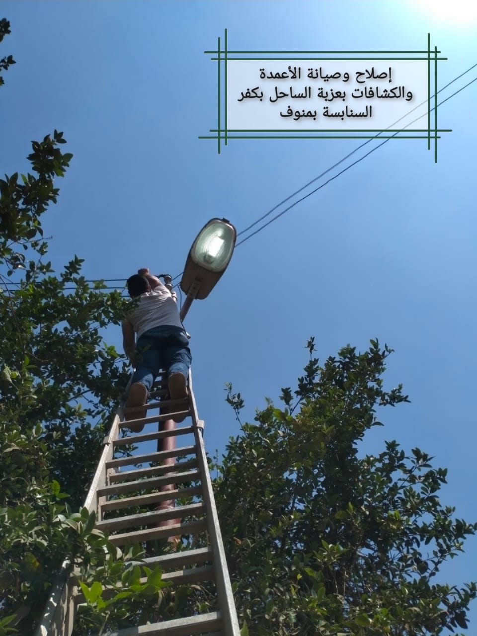وفى منوف، تم إصلاح وصيانة أعمدة الإنارة والكشافات بعزبة الساحل بكفر السنابسه، هذا وقد أكد رئيس المدينة استمرار شن حملات الصيانة المكبرة بنطاق المدينة لصيانة كافة شبكات الإنارة لتحسين مستوى الرؤية البصرية للمواطنين.