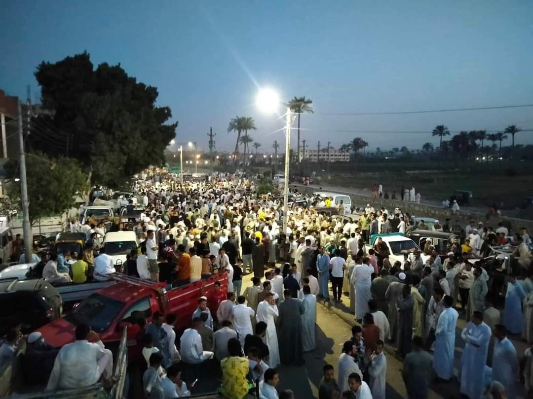 وفى مشهد مهيب شيع أهالي القرية برقاش الجثامين الـ 5 مطالبين بسرعة القصاص من القاتل.