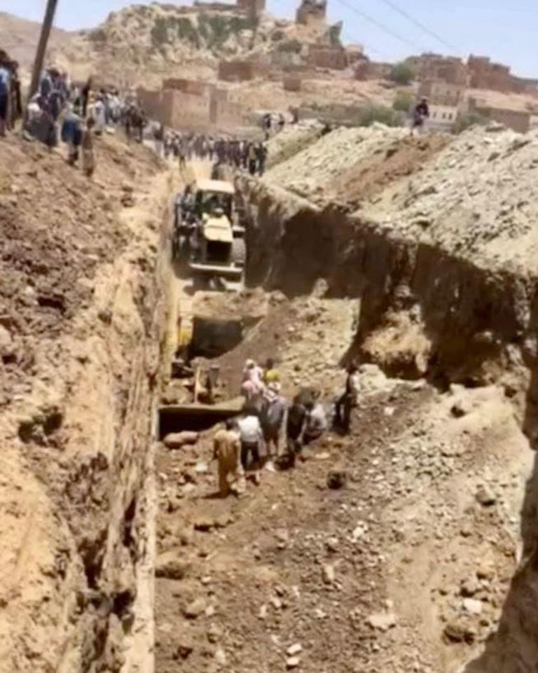 ووقعت الحادثة في بلدة ريفية في مديريات رداع في البيضاء عندما كان بعض الأهالي يعملون في تعميق بئر جوفية قبل أن تنهار أطنان التربة على 18 شخصا وتبدأ عملية إنقاذ شاقة لتعيد للأضواء مأساة الطفل المغربي "ريان" الذي خطفت أنظار العالم في فبراير الماضي.