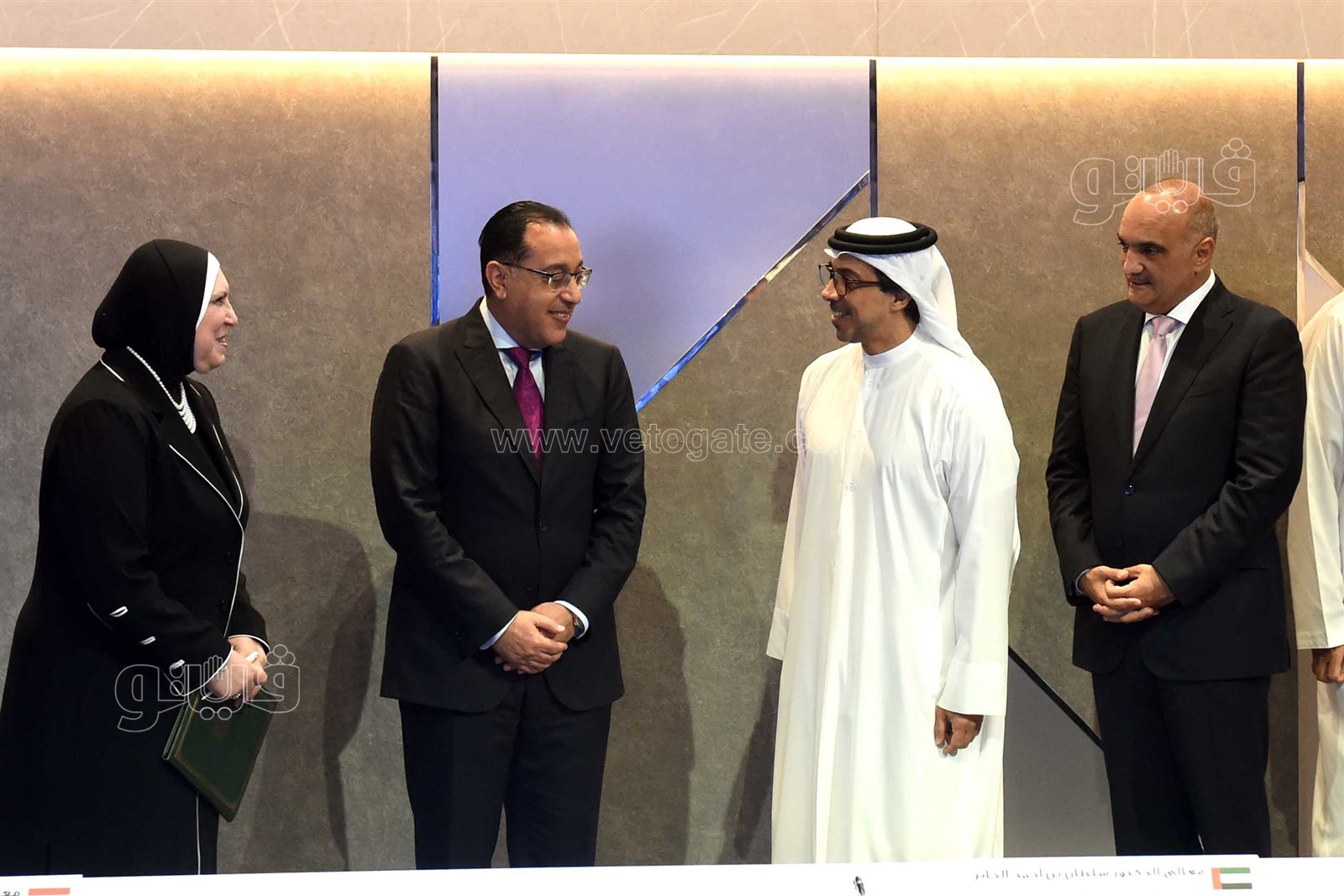 شهد الدكتور مصطفى مدبولي، رئيس مجلس الوزراء، والدكتور بشر الخصاونة، رئيس مجلس وزراء المملكة الأردنية الهاشمية، وسمو الشيخ منصور بن زايد آل نهيان، نائب رئيس مجلس الوزراء، وزير شئون الرئاسة في دولة الإمارات العربية المتحدة، مراسم التوقيع على وثيقة المبادرة.