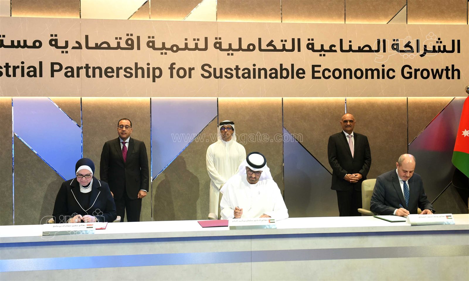 ويأتي التوقيع على وثيقة مبادرة "الشراكة الصناعية التكاملية لتنمية اقتصادية مستدامة"، انطلاقًا من توجيه القيادات السياسية في مصر والامارات والأردن، وتماشيًا مع القناعة الراسخة بضرورة تنمية القطاع الصناعي في كل منها، وتعزيز الاستفادة من المزايا والموارد والإمكانات والخامات، والقدرات والخبرات، والموقع الجغرافي المتميز، والقدرات اللوجستية، والبنية التحتية الهائلة للنقل وحلول التمويل الذكي؛ بهدف تأسيس صناعات تكاملية تسهم في تنويع الاقتصاد وتعزيز نموه وتوفير فرص عمل متخصصة.