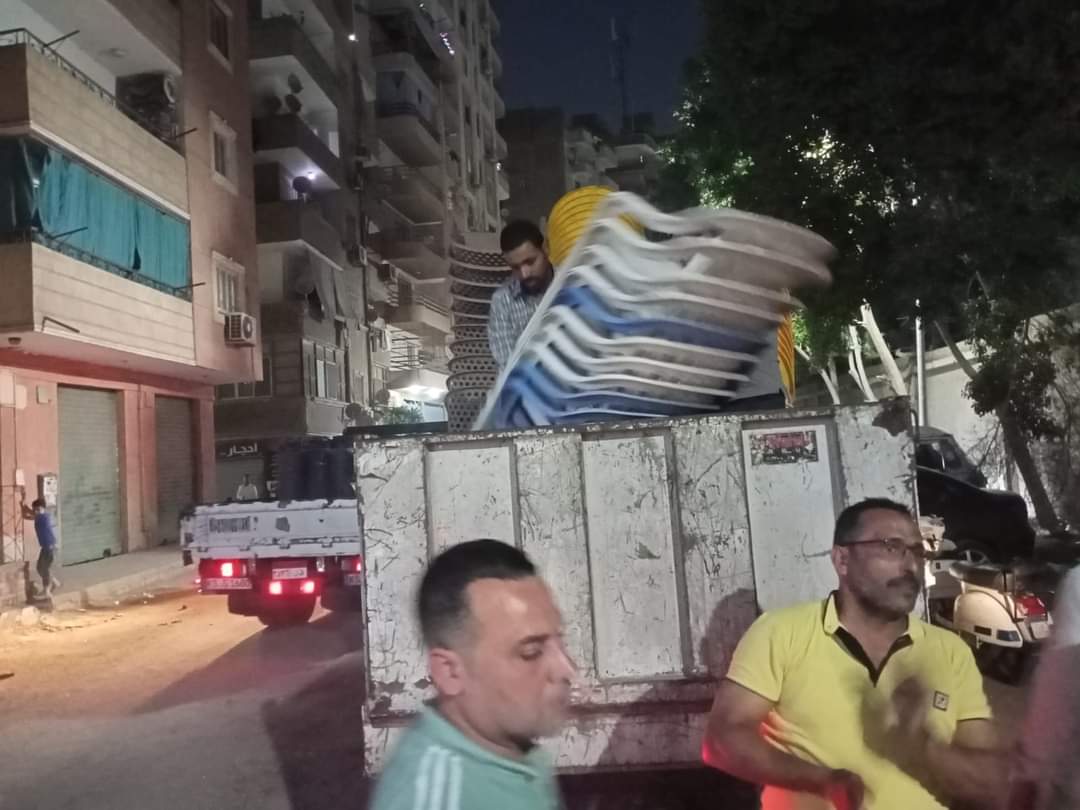 واستهدفت الحملة شوارع “العشرين، أبوزيد بدر، المساكن، ٦ أكتوبر، ناهيا وترعة المجنونة” وأسفرت عن رفع كافة الإشغالات من المحلات والمقاهي والكافيهات المخالفين كالآتي: ٣٠٠ كرسي متنوع، ٥٠ قلب وشيشة، كنبه جلد، جهاز وبلايستيشن، ١٠ ميزان متنوع، 5 مدرج خشب، ١٠ إستاند وحديدي، ٢ مرتبة، ٦ ترول، مطبخ ٢ قطعة، ٢ قفص حديد، 5 ثلاجات، تروسيكل، ٨ توك توك، وتم إيداع المضبوطات بمخازن الحى لاتخاذ كافة الإجراءات القانونية تجاه المخالفين وتم تحرير ٤ محاضر غلق وتشميع.