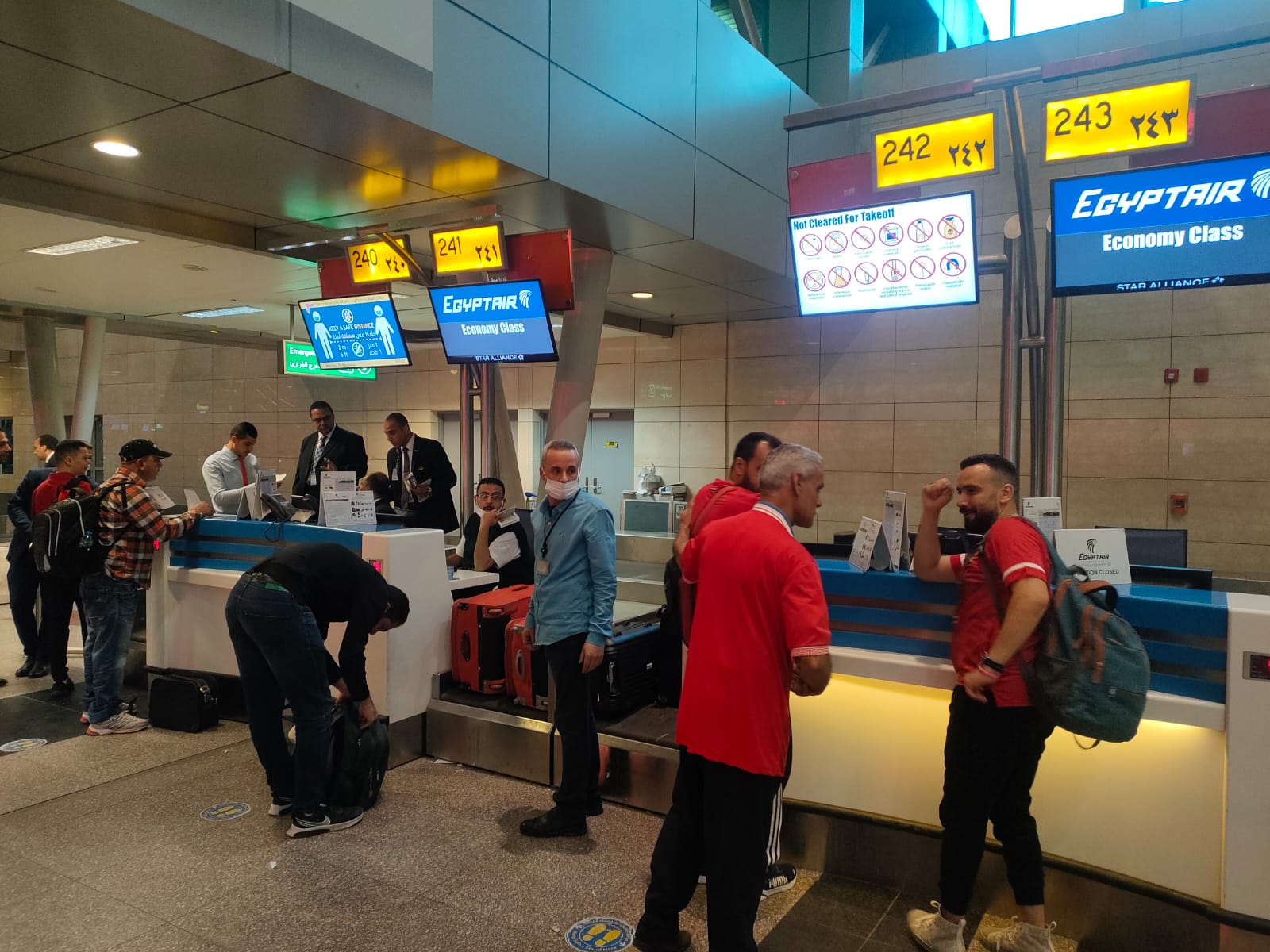 وتواصل مصر للطيران نقل مشجعي المارد الأحمر النادي الأهلي علي متن الرحلة اليومية المنتظمة رقم MS847 التي تقلع في الثامنة صباحا من مبنى الركاب رقم 2 بمطار القاهرة إلى مطار الملك محمد الخامس بالمغرب.