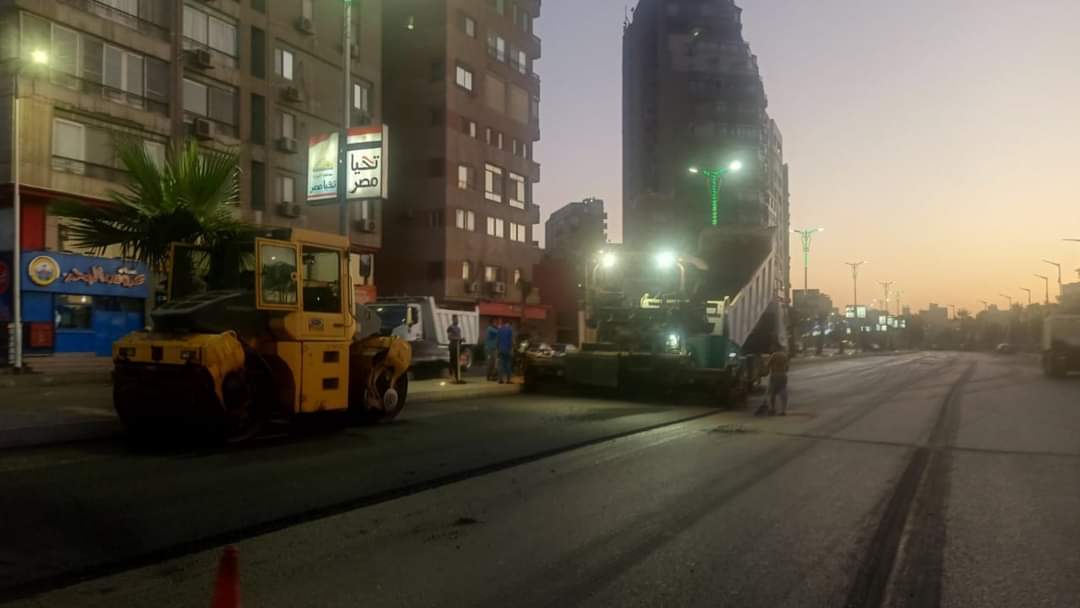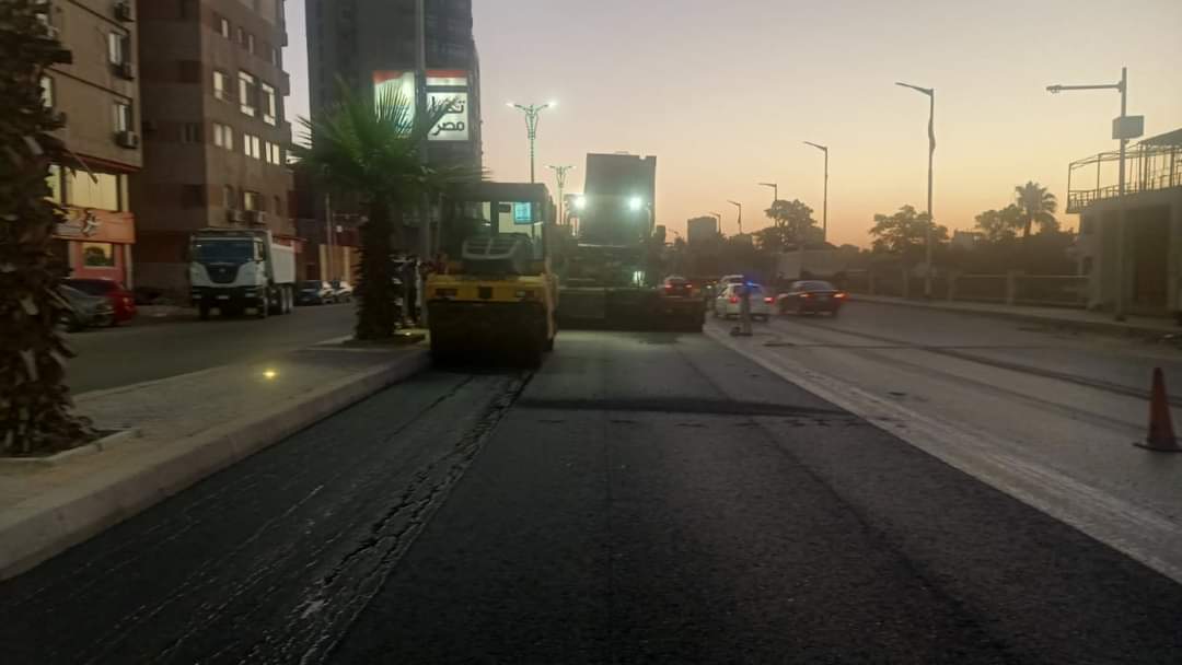 تركيب بلاعات أمطار ورصف الطبقة السطحية بشارع البحر الأعظم بالجيزة| صور