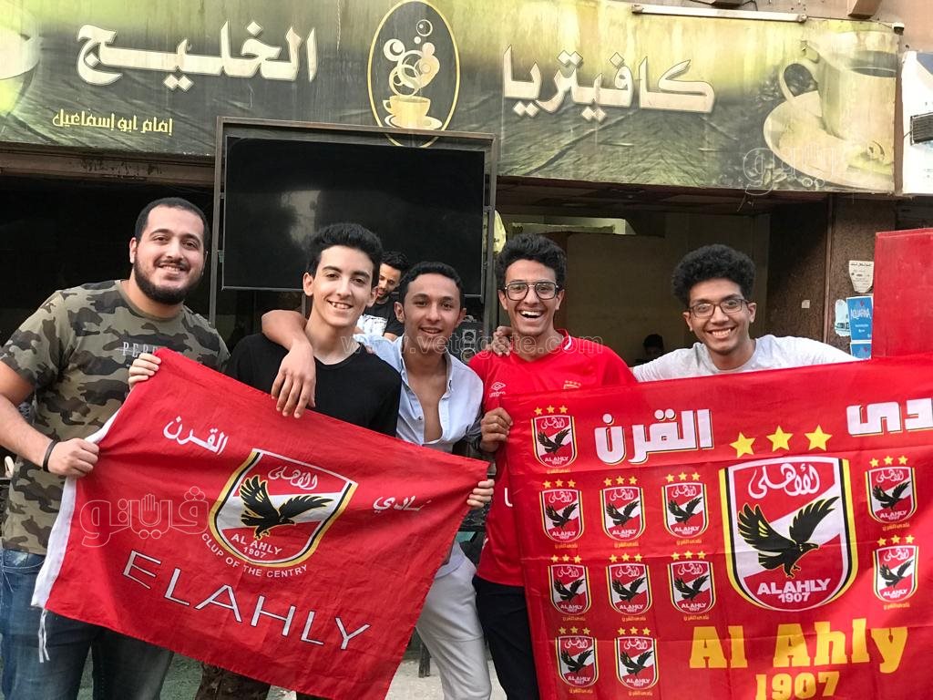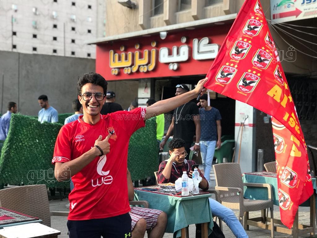 شهدت مقاهي منطقة الجيزة توافد عدد من جمهور النادي الأهلي بأعلام وتيشرتات الفريق استعدادًا لتشجيع مواجهة فريقهم أمام الوداد على ملعب مركب محمد الخامس بالدار البيضاء في تمام الساعة 9 مساء الإثنين بنهائي دوري أبطال أفريقيا.