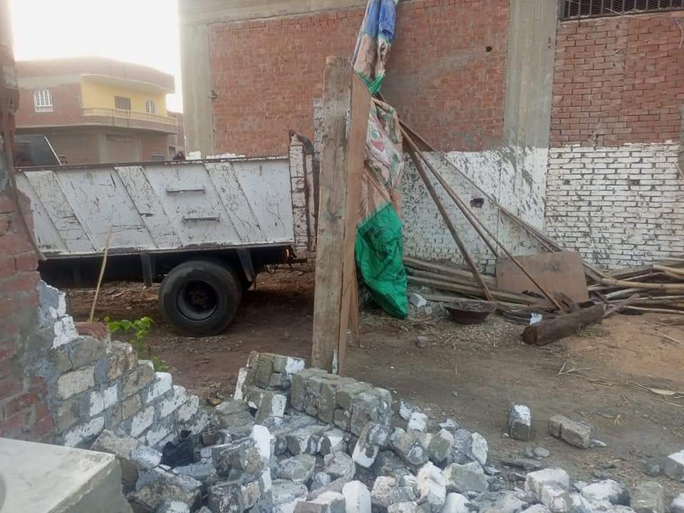 كما تم إزالة مخالفة بعرب الصباحية على مساحة ٨٠ مترًا إلى جانب فك شدة خشبية لأعمدة خرسانية لعقارين يتم تشييدهما بالمخالفة ملاصقين لبعضهم على مساحة ٢٥٠ مترًا بمدخل قرية عرب غمازة الكبرى.