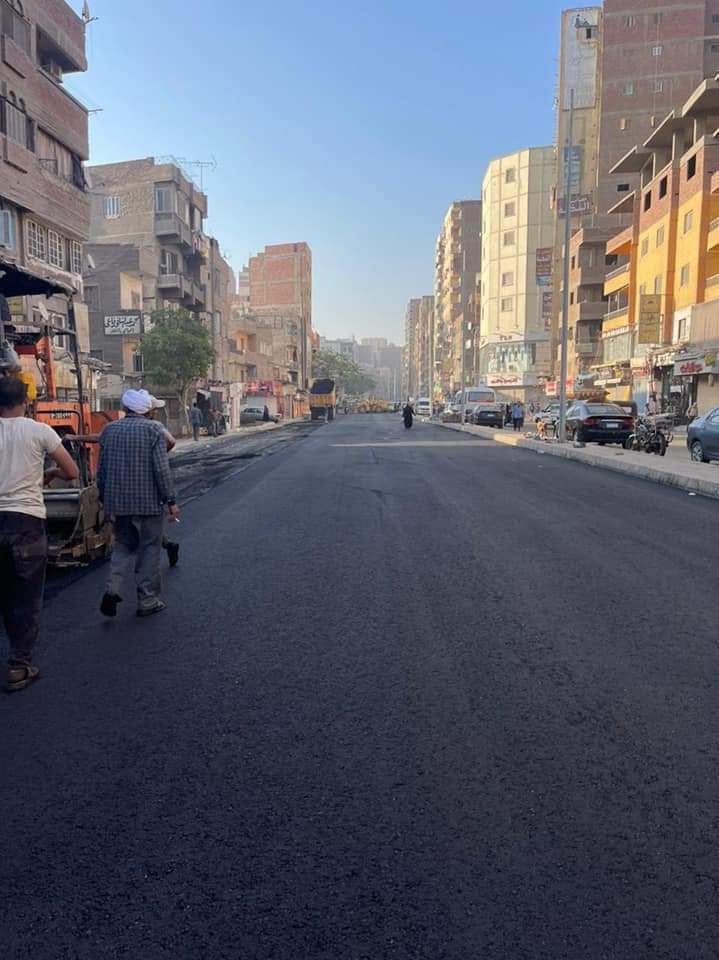 تستكمل محافظة الجيزة تنفيذ أعمال رصف الطبقة السطحية بشارع عثمان محرم بأحياء الطالبية والعمرانية.