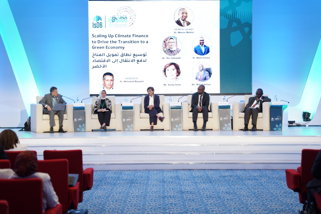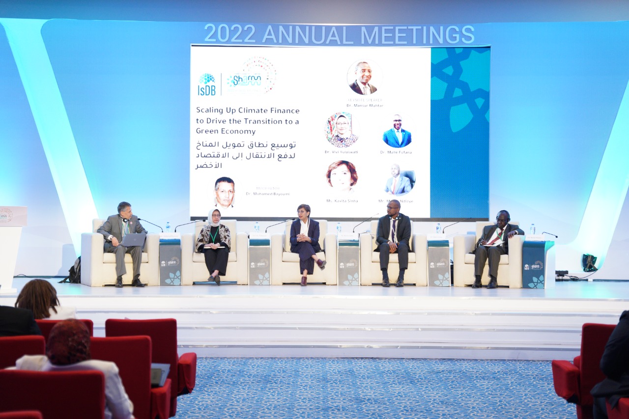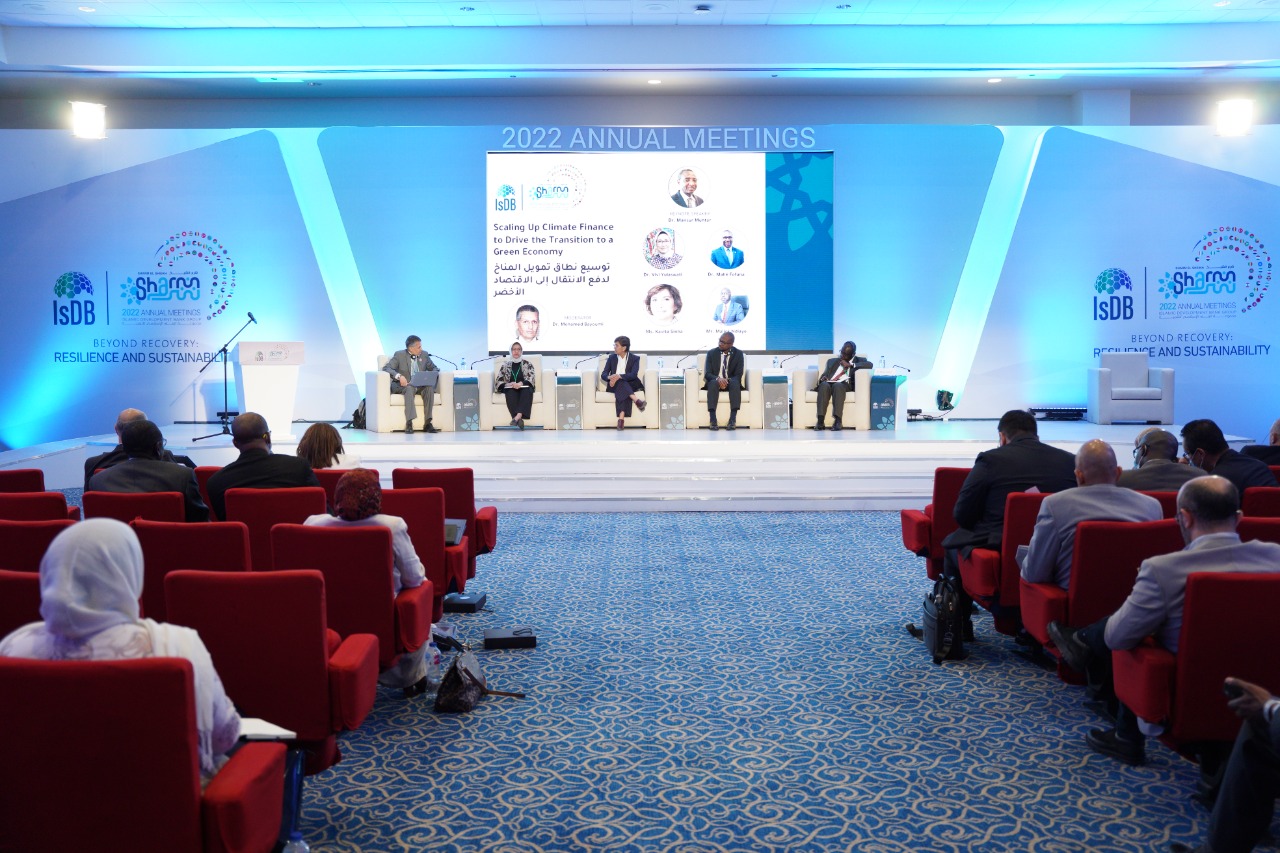 نظم البنك الإسلامي للتنمية جلسة حوارية حول "توسيع نطاق تمويل المناخ لدفع الانتقال إلى الاقتصاد الأخضر"، وذلك على هامش الاجتماعات السنوية لبنك التنمية الإسلامي 2022 المنعقدة خلال الفترة من 1 إلى 4 يونيو 2022 في شرم الشيخ تحت شعار (بعد التعافي من الجائحة: الصمود والاستدامة).