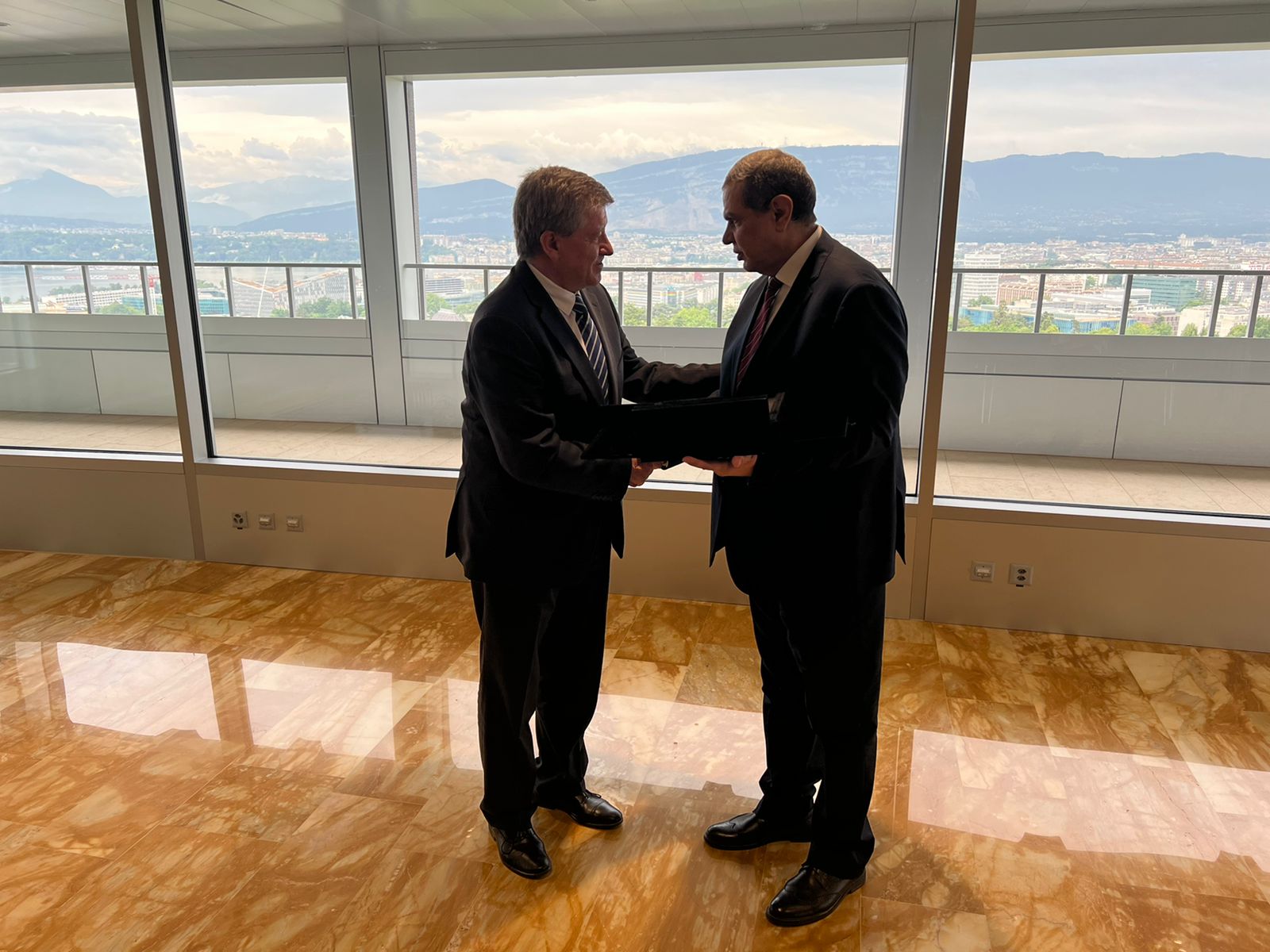 اللقاء جاء على هامش الدورة العاشرة بعد المائة لمؤتمر العمل الدولي المنعقدة حاليا بقصر الأمم المتحدة ومنظمة العمل الدولية بالمدينة السويسرية - جنيف