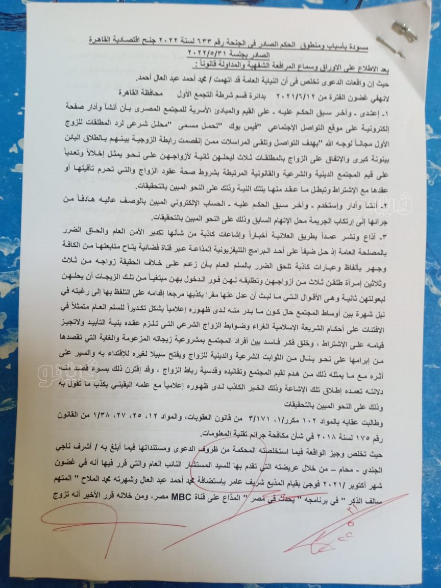 حيثيات حبس المحلل الشرعي: خلق فكرا فاسدا بين أفراد المجتمع | مستندات