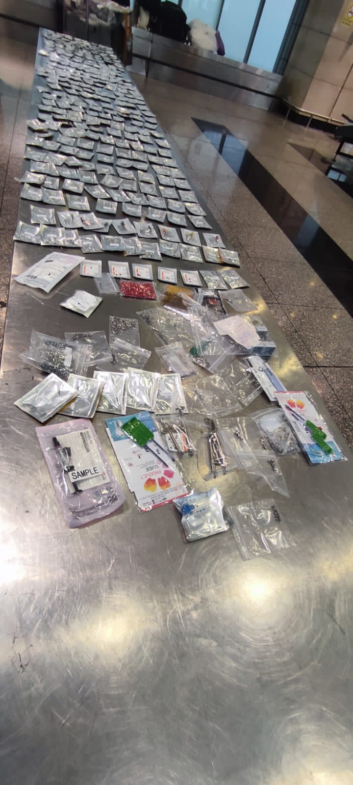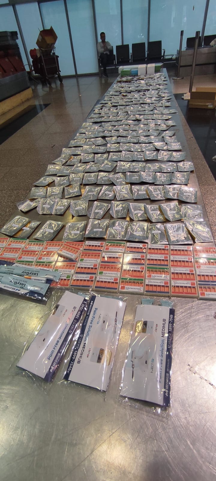 وأضافت المصادر أنه بعد مناظرة جواز سفره والتحقق من بياناته ومنها أنه يعمل طبيب أسنان باحدى المستشفيات، وبتفتيش حقائبه على جهاز الفحص بالأشعة بواسطة كل من علي محمد الصعيدي مأمور الجمرك، وطاهر خفاجي رئيس القسم، تلاحظ لهما وجود كميات مما يشتبه أن تكون أدوات ومستلزمات طبية.