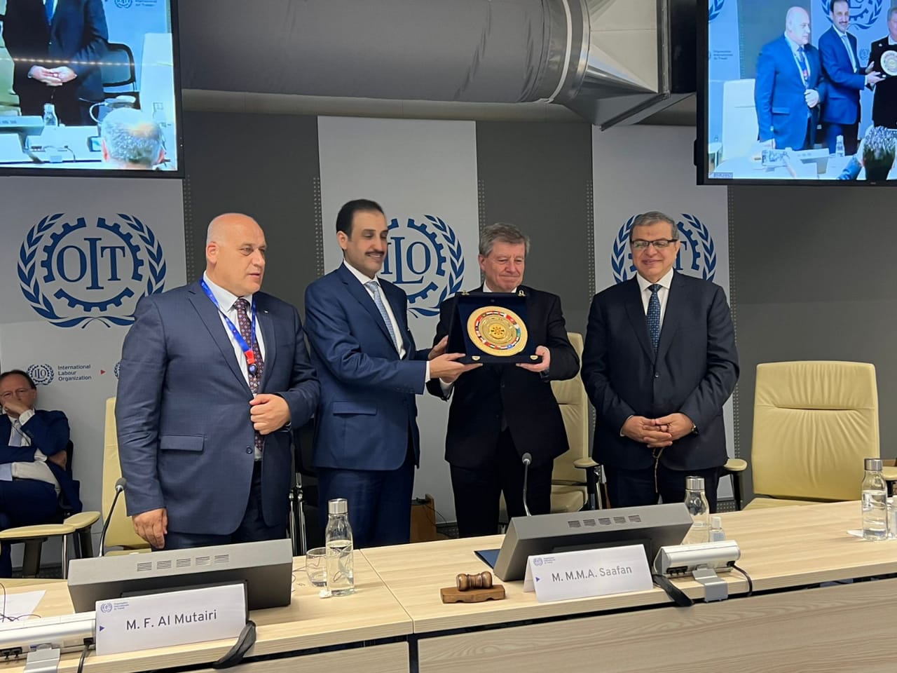 ودعا الوزير باسم المجموعة العربية الجميع للمشاركة في هذا الاجتماع المهم لنشد على يد كل فلسطيني ونعلن عن دعمنا ومؤازرتها له في سبيل نيل حقوقه المشروعة، كما نطالب المجتمع الدولي بصفة عامة ومنظمة العمل الدولية بصفة خاصة، بتقديم المزيد من الدعم المادي والمعنوي ومساعدته في إنهاء الاحتلال واستعادة أرضه المغتصبة وإيقاف الجرائم والانتهاكات الخطيرة التي ترتكب في حق الشعب الفلسطيني الأعزل واستعادة كافة حقوقه المشروعة وفق قرارات الشرعية الدولية، وعلى الأخص في إنشاء دولته المستقلة على أرض فلسطين وعاصمتها القدس الشريف.