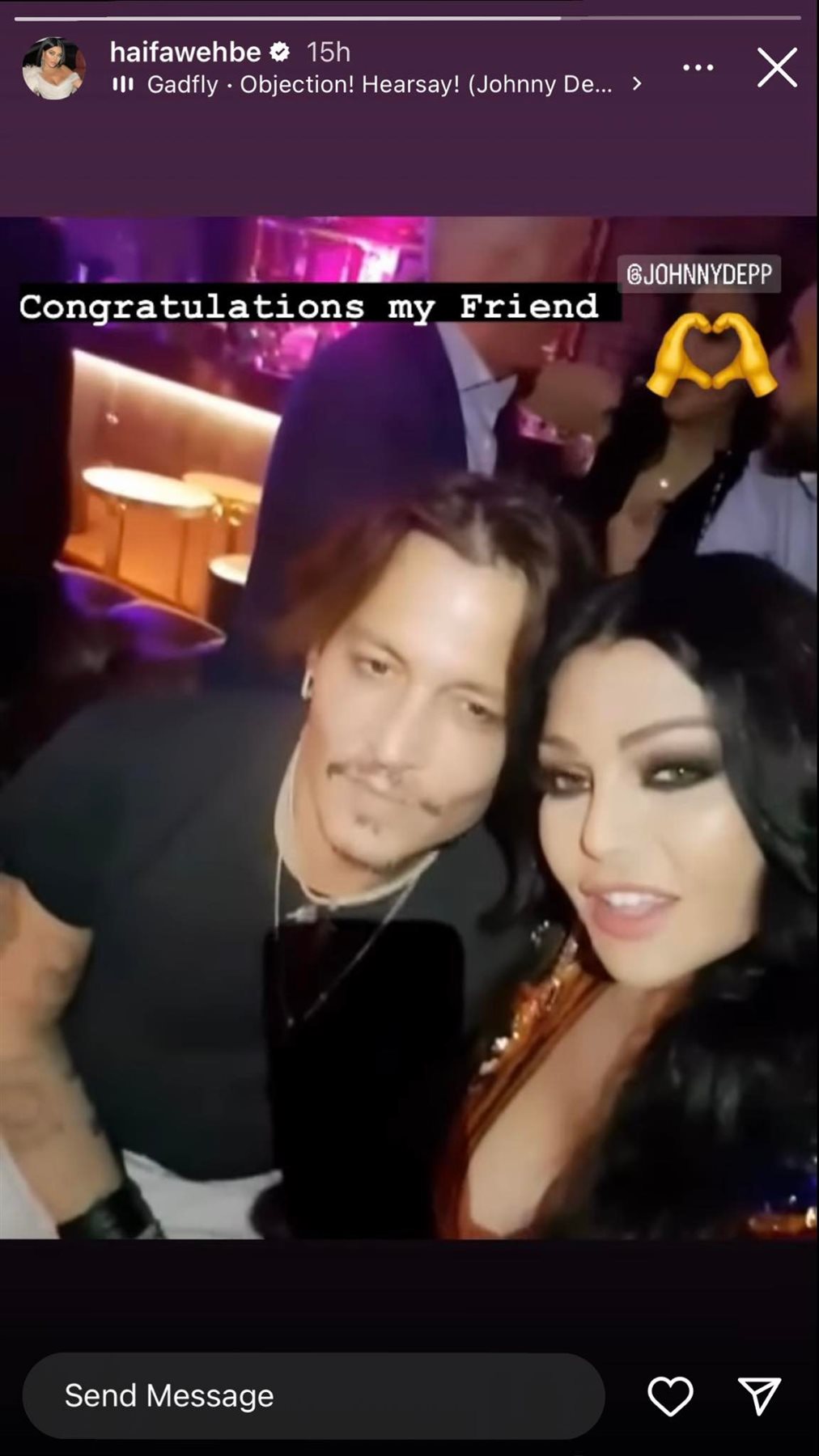 فاجأت الفنانة اللبنانية، هيفاء وهبي، جمهورها ومتابعيها بنشر فيديو جديد عبر حسابها على موقع الصور الشهير “انستجرام”، والتى ظهرت فيه برفقة “جوني ديب”، وذلك بعد الحكم لصالحه ضد آمبر هيرد في قضية تشويه السمعة.