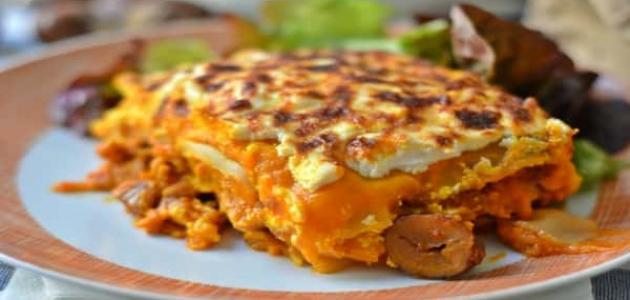وأخيرًا طبقة البشاميل ويسوى بالفرن لمدة حوالي نصف ساعة وبألف هنا.