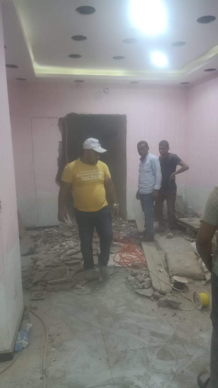 كما تم إزالة مخالفة بعرب الصباحية على مساحة ٨٠ مترًا إلى جانب فك شدة خشبية لأعمدة خرسانية لعقارين يتم تشييدهما بالمخالفة ملاصقين لبعضهم على مساحة ٢٥٠ مترًا بمدخل قرية عرب غمازة الكبرى.