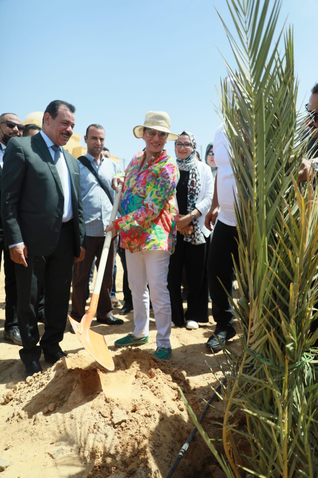 قامت وزيرة البيئة والمحافظ بزارعة نخلة بالحديقة والتى تعد أحدث حديقة ترفيهية ثقافية تضم مجسمات لأهم المعالم والمواقع التاريخية والثقافية على مستوى الجمهورية ومسطحات خضراء وملاعب رياضية وحمام سباحة وممشى دراجات ومسجد وذلك على مساحة 8 فدان.