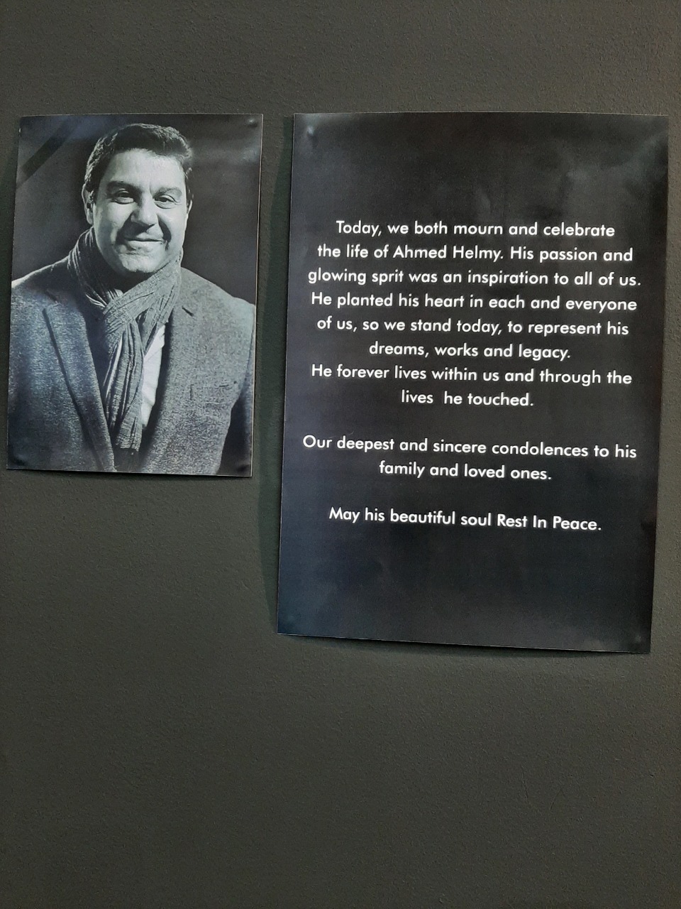 و تضمنت فعاليات المعرض وقفة تأبين من أصدقائه ومحبيه سواء من رجال الصناعة، أدهم نديم، شريف عبد الهادي، أعضاء مجلس إدارة غرفة الأخشاب، عمرو حلمي عضو غرفة الأخشاب، أحمد عبد الحميد، رئيس غرفة صناعة مواد البناء بالإضافة إلى سوسن مراد - رئيسة تحرير مجلة البيت، وبحضور أولاد الفقيد ملك أحمد حلمي، إبراهيم أحمد حلمي.