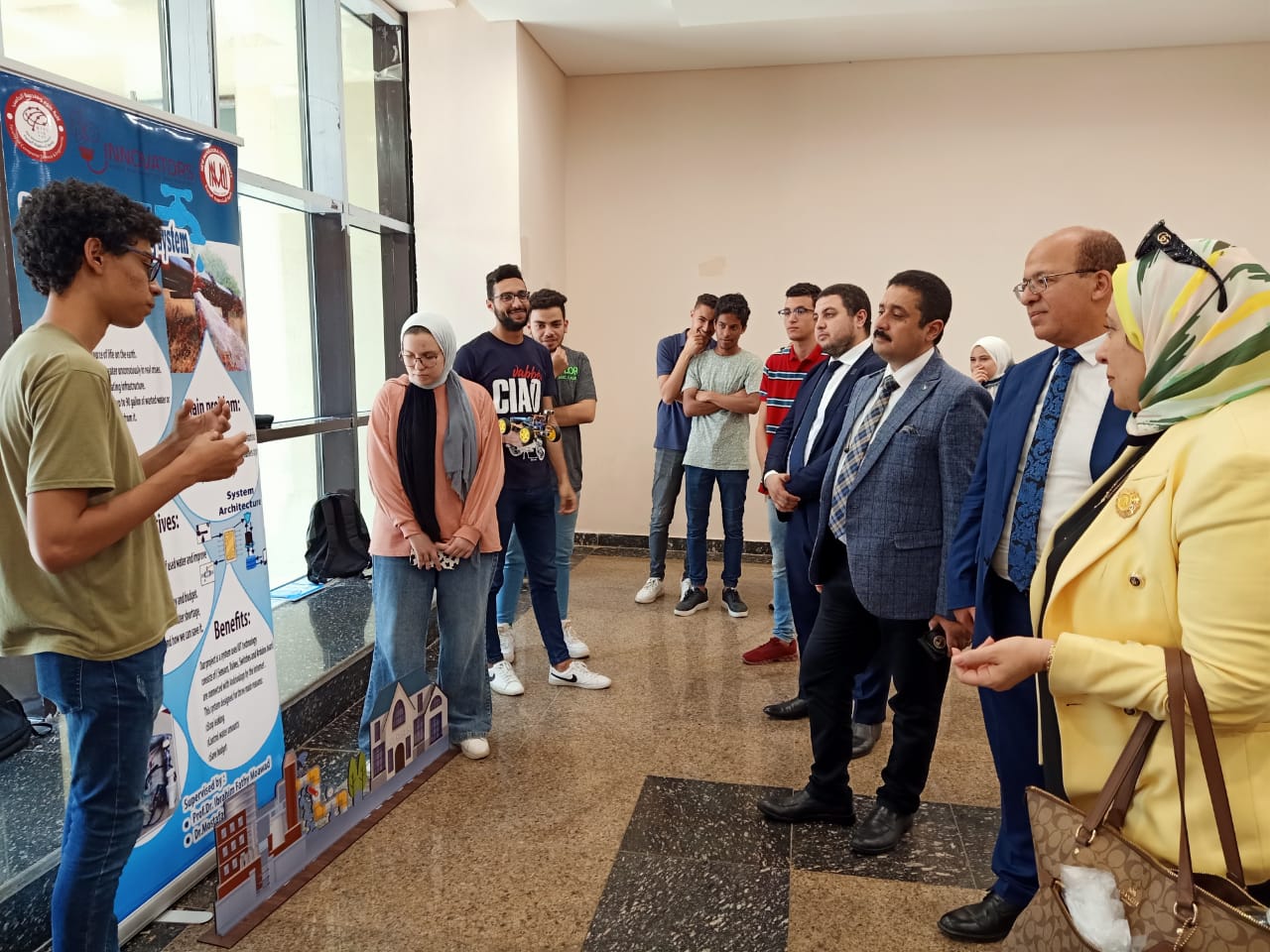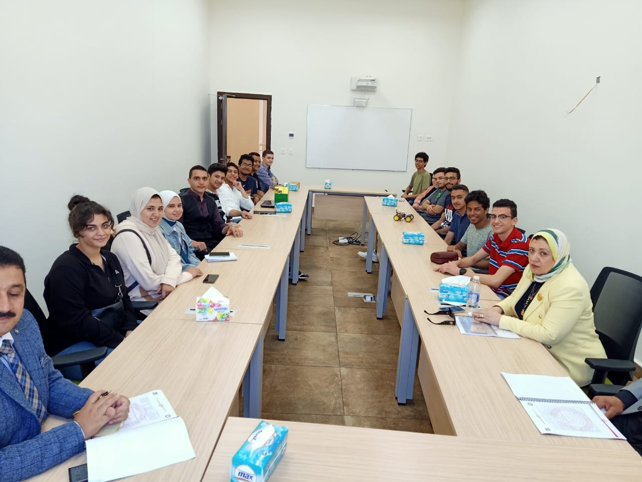 وأخيرا قامت اللجنة بلقاء الطلبة وأعضاء هيئة التدريس بالكلية وكذلك الهيئة المعاونة بالكلية، وقد تم عرض عدد من المشاريع التي قام بها الطلبة خلال العام الأكاديمي الحالي ٢٠٢١/٢٠٢.