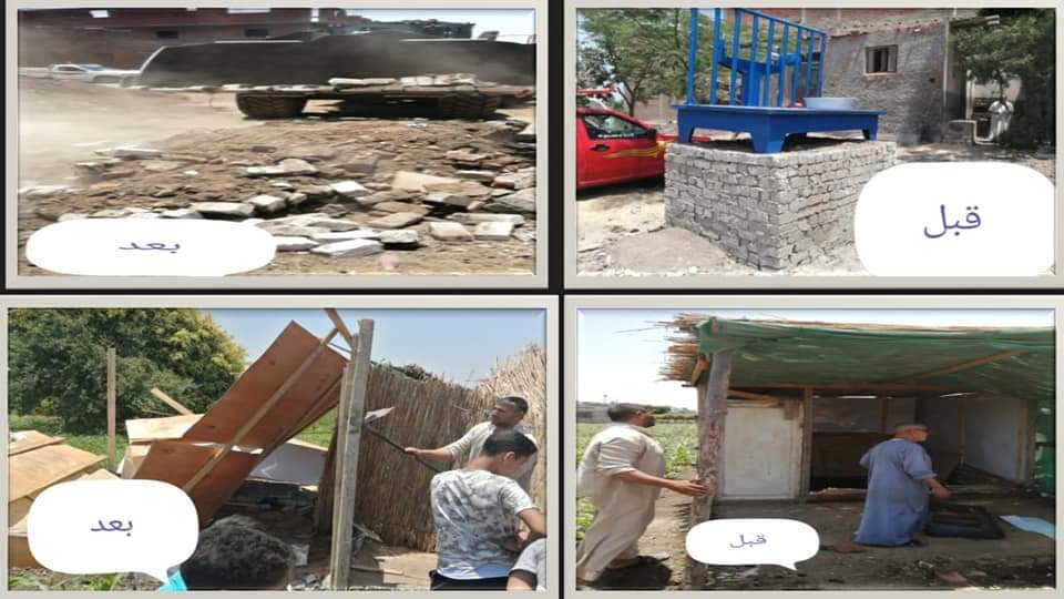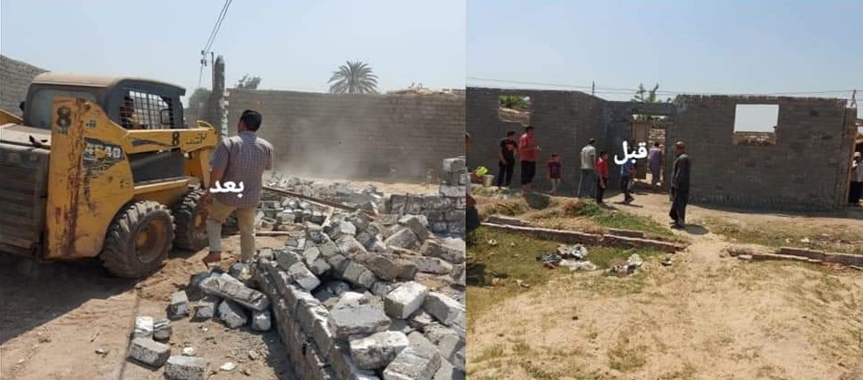 كما تم إزالة مخالفة بعرب الصباحية على مساحة ٨٠ مترًا إلى جانب فك شدة خشبية لأعمدة خرسانية لعقارين يتم تشييدهما بالمخالفة ملاصقين لبعضهم على مساحة ٢٥٠ مترًا بمدخل قرية عرب غمازة الكبرى.