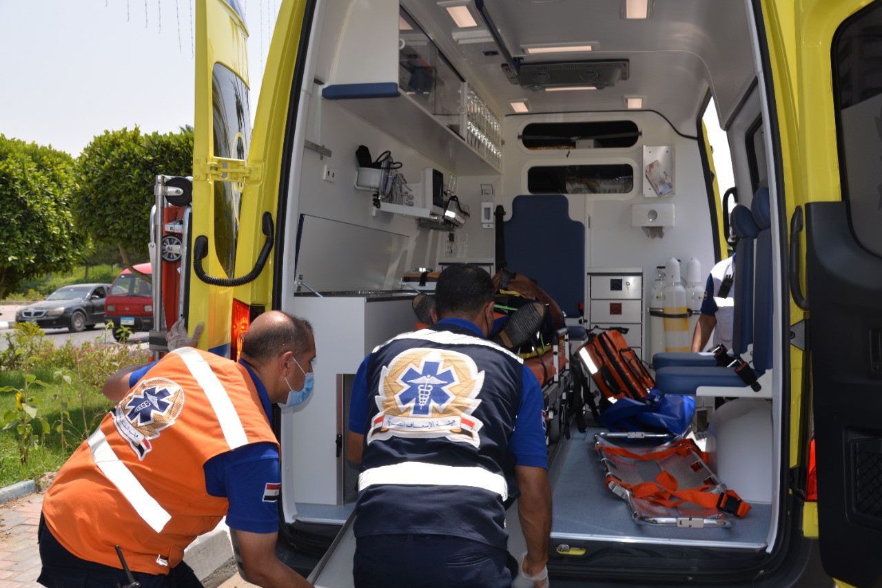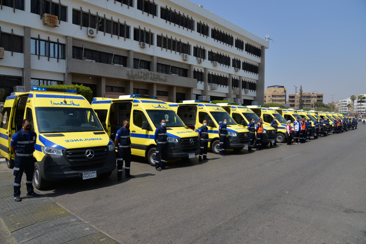 وتم وصول 14 سيارة اسعاف مجهزه حديثه موديل العام 2022، بها كافه الإمكانيات من جهاز تنفس صناعي،غرفك عناية مركزة ومتطورة، جهاز إنعاش قلبي رئوي، جهاز صدمات ومونيتور، جهاز رسم قلب.