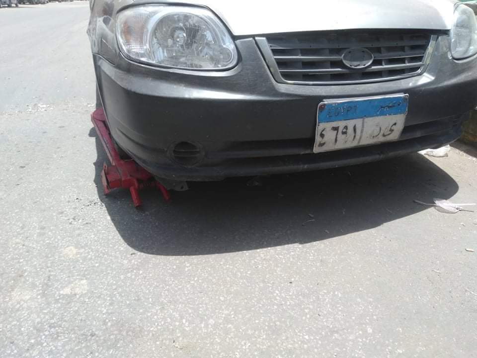 كلبشة للسيارات المتعدية على الأرصفة والجزر الوسطي بشمال الجيزة| صور