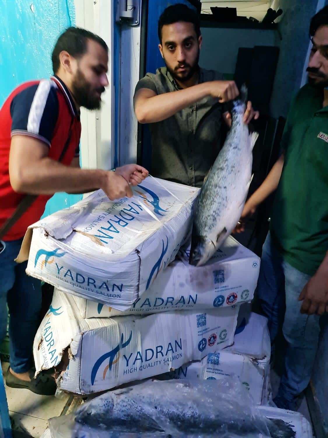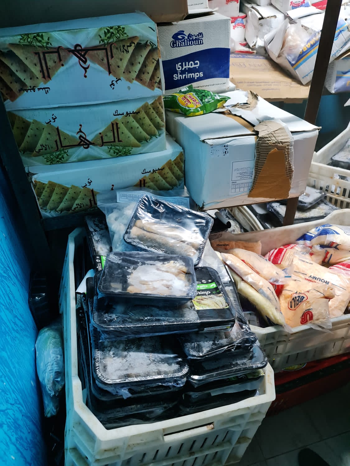 تم ضبط أكثر من نصف طن أسماك وجمبري منتهي الصلاحية وبه تغير في الخواص الطبيعية وتفاصيلها كالآتي: سمك سالمون بالرأس ومنزوع الأحشاء ماركة مكسيم فود بـ 7 كراتين كل كرتونة 25 كيلوجرامًا بإجمالي وزن 175 كيلو، شرائح سالمون مدخن بإجمالي وزن 65 كيلو، فيلية قشر بياض 55 كيلو، جمبري مقشر جامبو 65 كيلو سبيط وكاليماري 75 كيلو، فراخ كاملة منزوعة الأحشاء 85 كيلو، مصنعات لحوم مختلفة 35 كيلو .