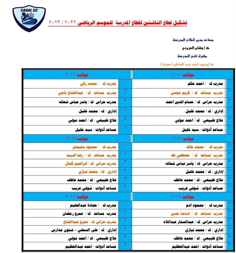 وكان مجلس إدارة نادي القناة برئاسة الدكتور خالد عفيفي اعتمد تشكيل قطاع الناشئين لكرة القدم للموسم الرياضي ٢٠٢٢ /٢٠٢٣.
