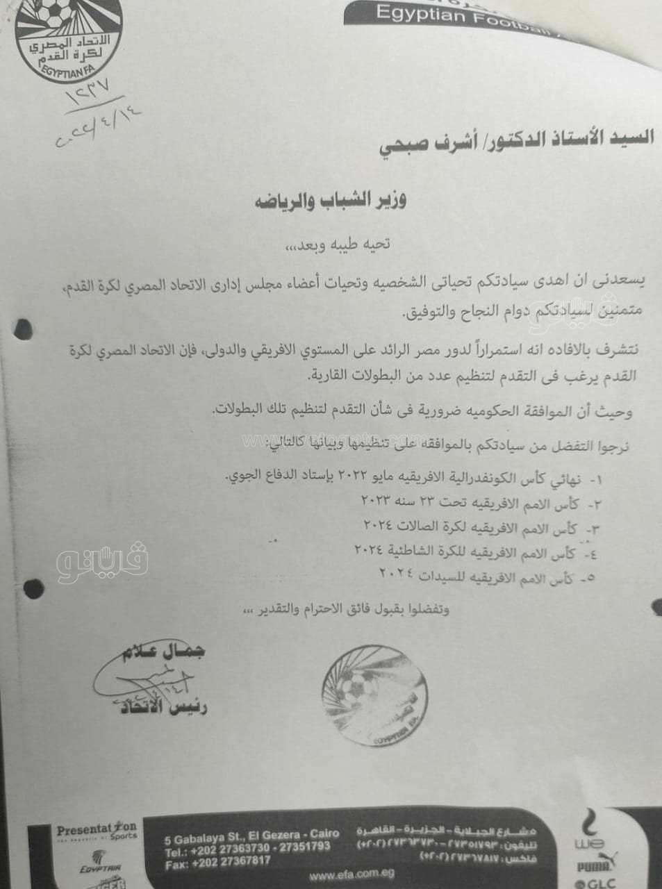 المفاجأة كانت إرسال اتحاد الكرة خطابًا رسميًّا إلى وزارة الشباب والرياضة في 14 أبريل الماضي، طلبوا خلاله تنظيم 5 بطولات من الـ7 التي أعلن عنها الكاف، وتجاهلوا تمامًا طلب استضافة نهائي دوري أبطال أفريقيا رغم وصول الأهلي وقتها إلى قبل النهائي، بجانب تجاهل نهائيات دوري أبطال أفريقيا للسيدات.