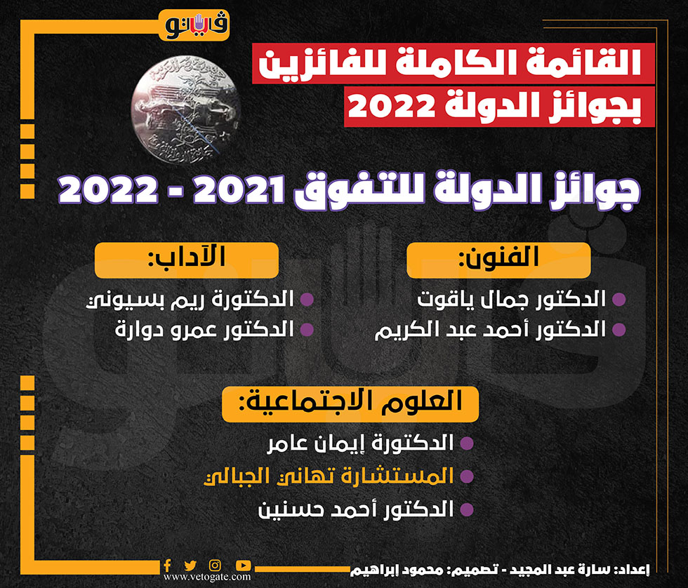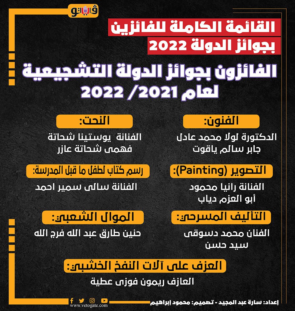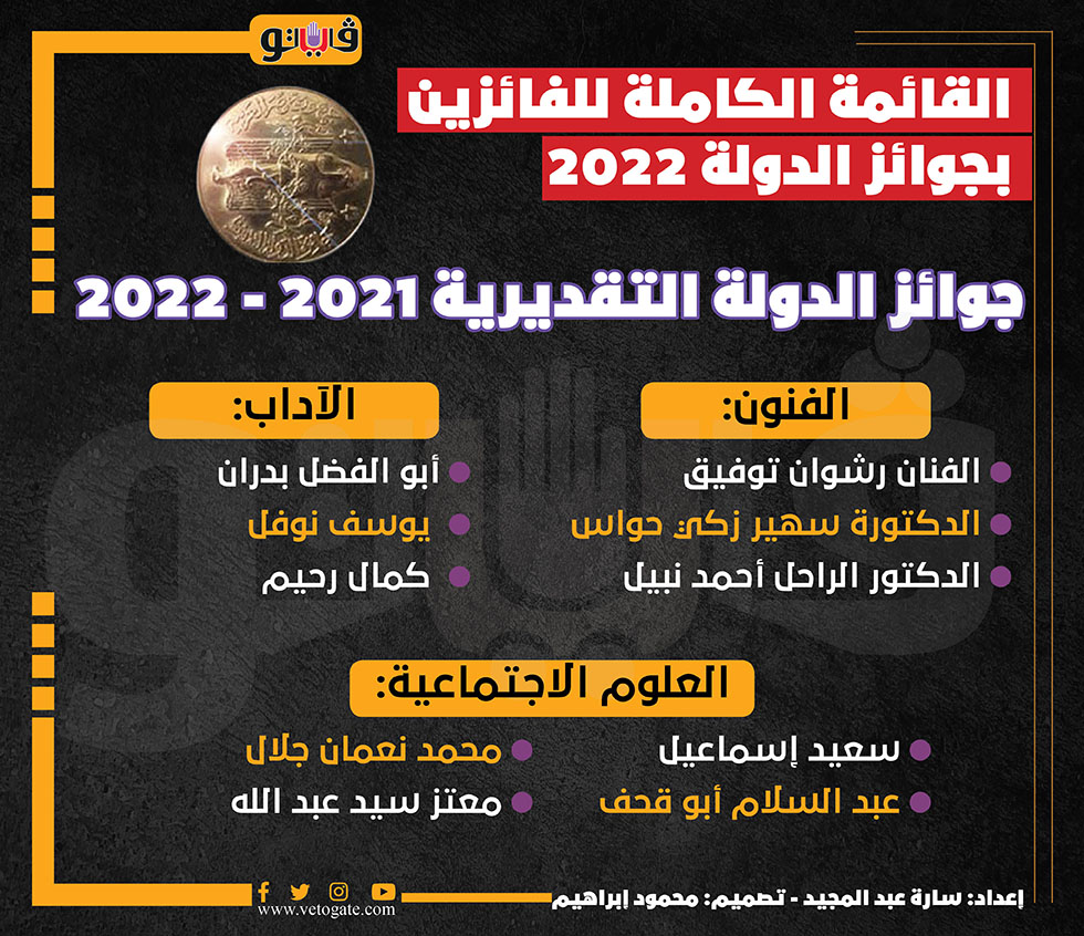 القائمة الكاملة للفائزين بجوائز الدولة 2022 | انفوجراف الثلاثاء 07/يونيو/2022 - 08:30 م 6/7/2022 8:30:34 PM القائمة الكاملة للفائزين بجوائز الدولة 2022 سارة عبد المجيد شارك طباعة 18 حجم الخط شارك طباعة احمد عبد الكريم ريم بسيوني جوائز الدولة عمرو دوارة جائزة التفوق الفائزين بجوائز الدولة