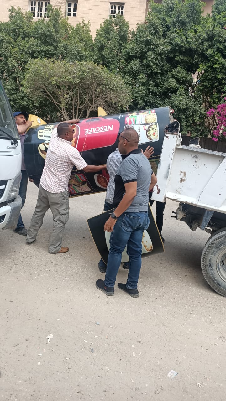 “العشرين، أبوزيد بدر، المساكن، ٦ أكتوبر، ناهيا وترعة المجنونة” وأسفرت عن رفع كافة الإشغالات من المحلات والمقاهي والكافيهات المخالفين كالآتي: ٣٠٠ كرسي متنوع، ٥٠ قلب وشيشة، كنبه جلد، جهاز وبلايستيشن، ١٠ ميزان متنوع، 5 مدرجات خشب، ١٠ إستاندات وحديدية، ٢ مرتبة، ٦ ترول، مطبخ ٢ قطعة، ٢ قفص حديد، 5 ثلاجات، تروسيكل، ٨ توك توك.