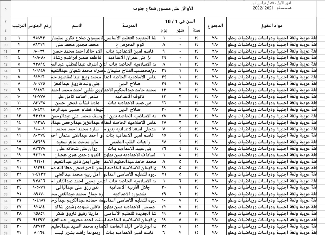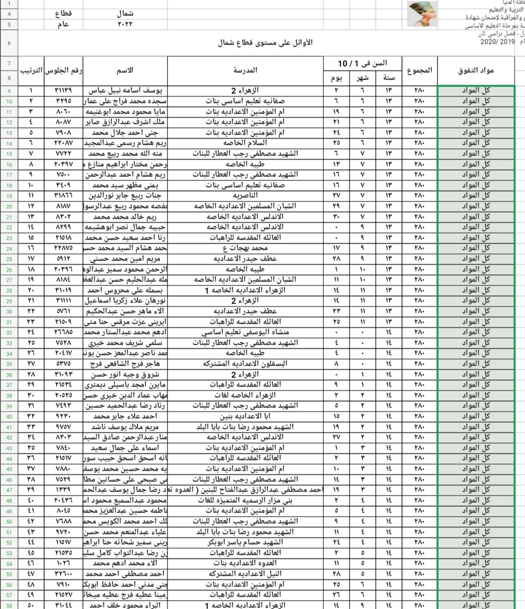 وحصلت فيتو على أسماء أوائل الشهادة الإعدادية 2022 في جميع القطاعات «شمال وسط جنوب»، والبالغ عددهم 126 طالب وطالبة، وأظهرت المعاينة الأولية تفوق الفتيات على البنين في الشهادة الإعدادية.