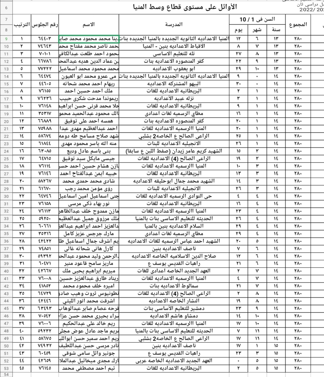 بالأسماء.. 126 طالبا ضمن أوائل الشهادة الإعدادية 2022 محافظة المنيا