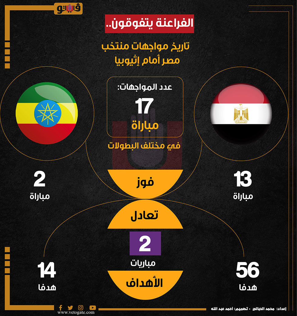 الفراعنة يتفوقون.. تاريخ مواجهات منتخب مصر أمام إثيوبيا| إنفوجراف الأربعاء 08/يونيو/2022 - 05:30 م 6/8/2022 5:30:39 PM منتخب مصر إعداد محمد الجبالي شارك طباعة 18 حجم الخط شارك طباعة الفراعنة اثيوبيا مصر منتخب مصر انفوجراف