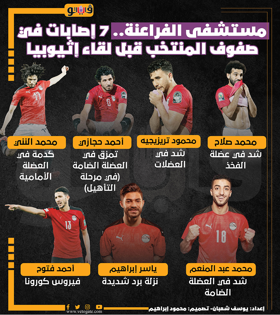 مستشفى الفراعنة.. 7 إصابات في صفوف المنتخب قبل لقاء إثيوبيا | إنفوجراف الخميس 09/يونيو/2022 - 11:30 ص 6/9/2022 11:30:40 AM استعدادات منتخب مصر لمواجهة اثيوبيا يوسف شعبان شارك طباعة 18 حجم الخط شارك طباعة منتخب مصر أخبار منتخب مصر الأول لكرة القدم إصابات منتخب مصر لكرة القدم منتخب اثيوبيا تصفيات أمم افريقيا 2023