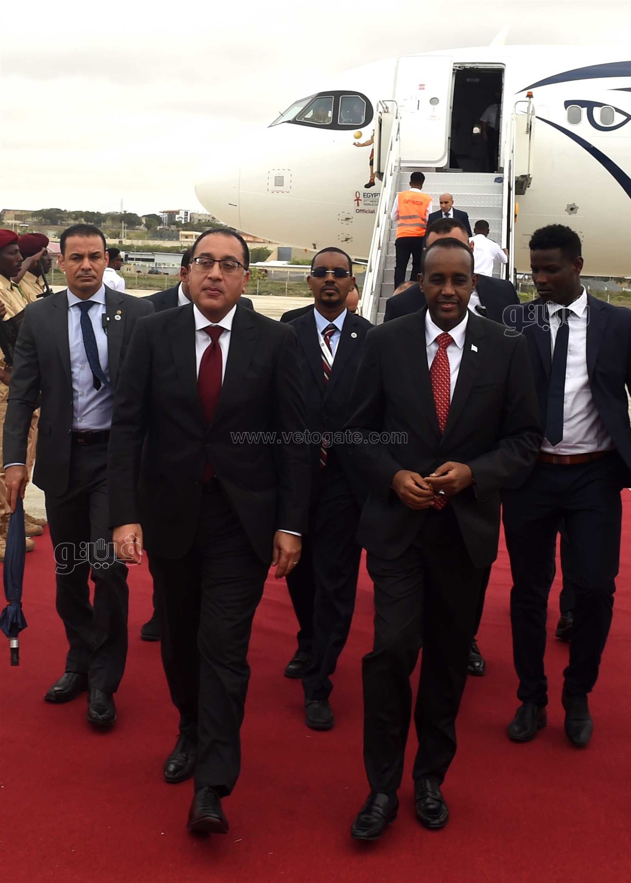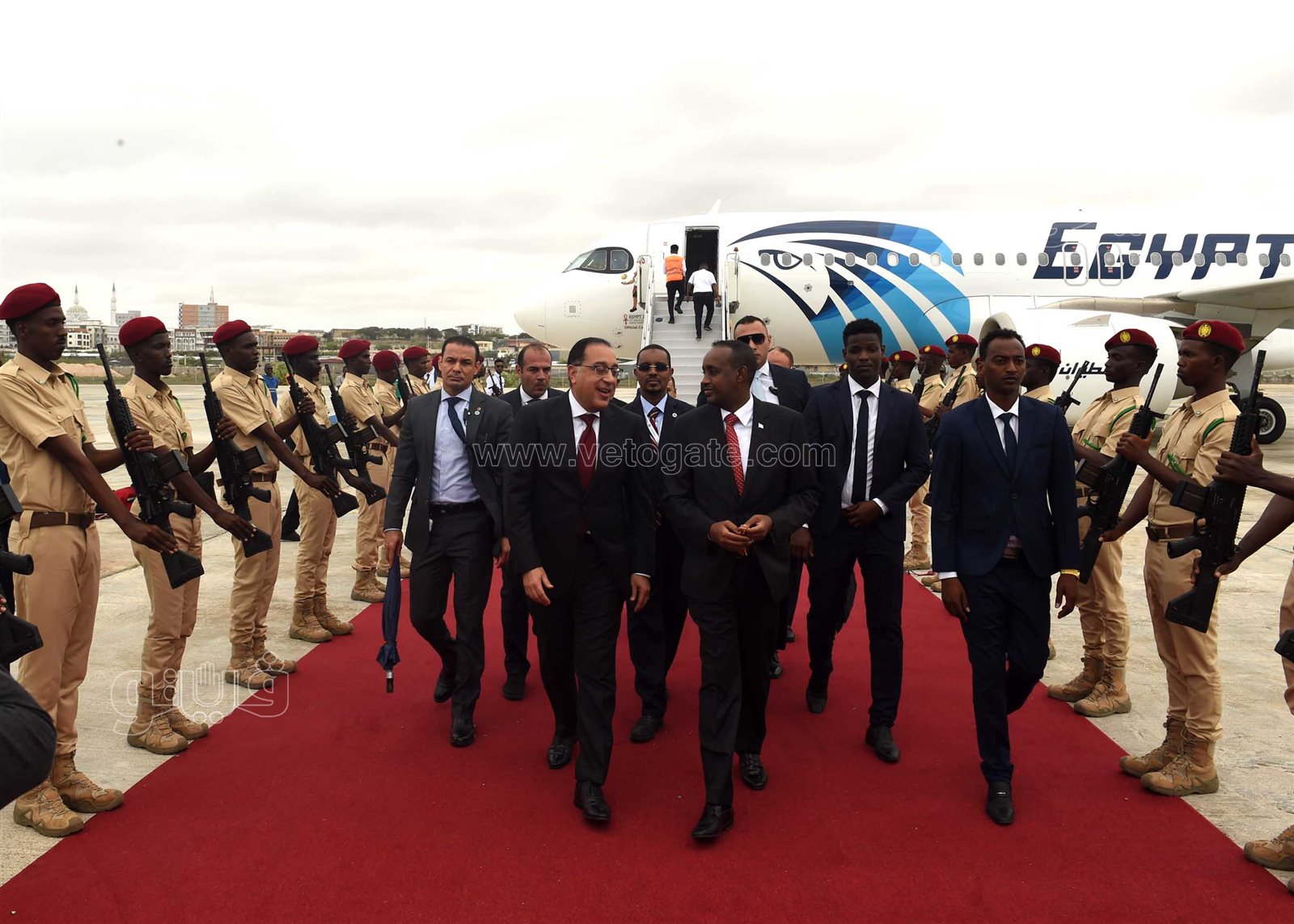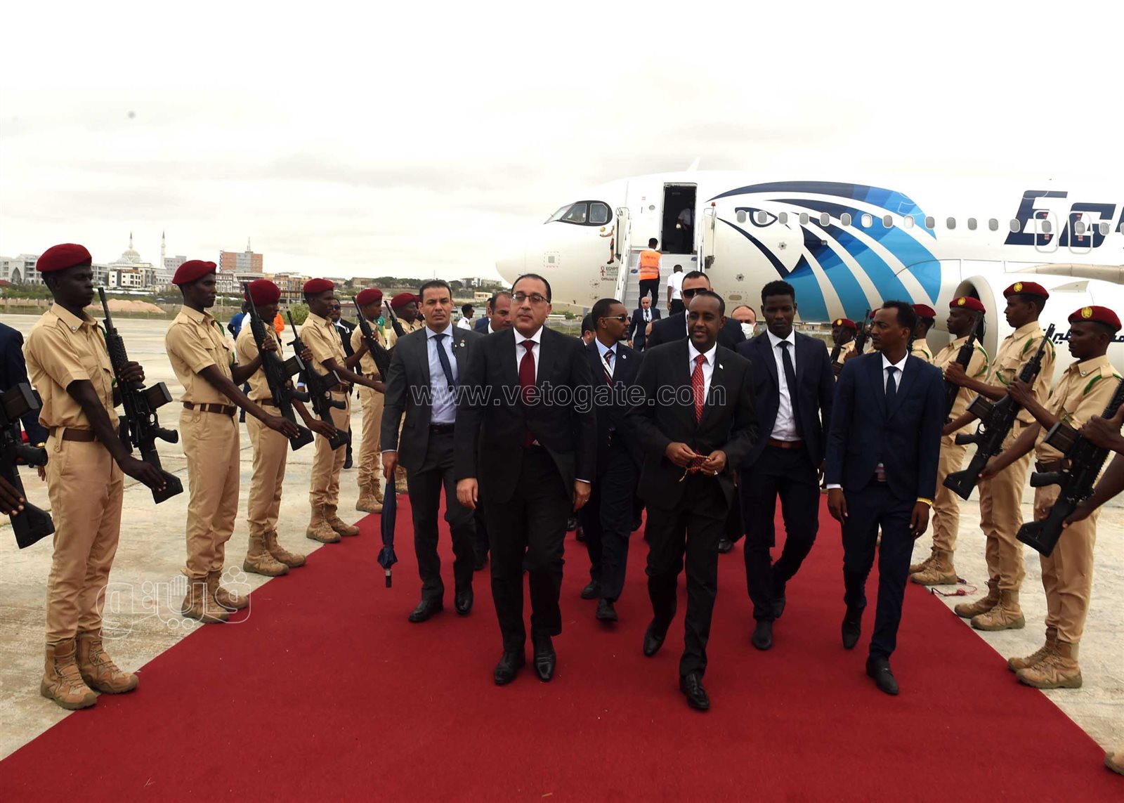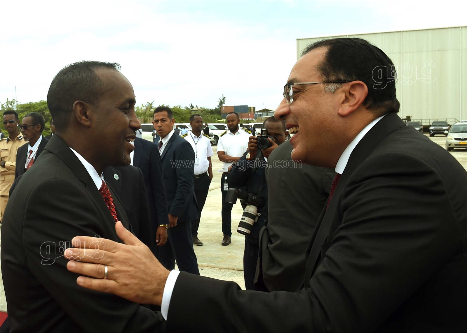 وكان في استقبال رئيس الوزراء في المطار، نظيره الصومالي، محمد حسين روبلي، والسفير محمد الباز، سفير مصر بالصومال.