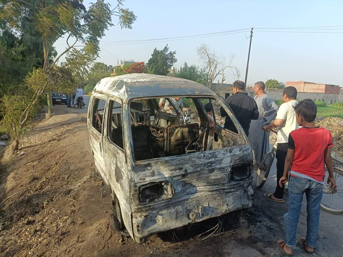 وكانت أجهزة الأمن تلقت إخطارًا من الأهالي باشتعال النيران في سيارة سوزوكي أجرة على طريق ميت العطار طحلة مركز بنها وإصابة 2 وإصابة 5 من الركاب بينهم السائق ونجله.