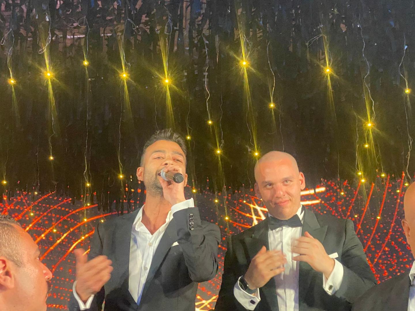 وتألق الفنان عمرو دياب، خلال الحفل حيث قدم باقة من أجمل أغانيه الطربية المميزة التي أشعلت الحفل وتراقص على أنغامها الحضور.