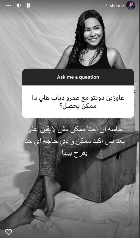 وأجابت شيرين، عبر ASK، أقامته عبر خاصية ستوري لحسابها على انستجرام، قائلةً: حاسة إن احنا مش لايقين على بعض.. بس أكيد ممكن ودي حاجة أي حد يفرح بيها.