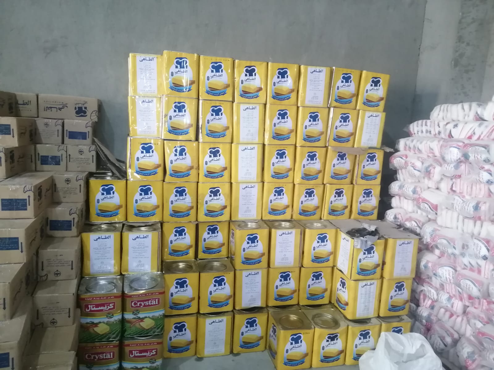 حيث تم ضبط 410 أطنان من المواد الغذائية، منهم 300 طن دقيق سياحى معبأ في شكائر و15 طنا من الأرز، و5 أطنان من السكر المعبأ، و35 طنا من السمن المعبأ، و25 طنا من الزيت و20 طنا من الزبد والملبن والعجوة ومواد غذائية أخرى.
