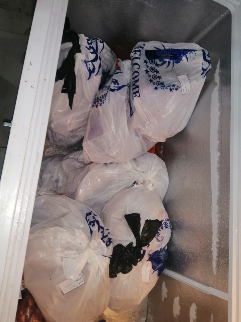 كما تم ضبط 60 كرتونة شيبسى ومقرمشات منتهية الصلاحية، وطنان من اللحوم والمجمدات بدون علامات تجارية وبيانات بقصد الغش التجارى والتربح الغير مشروع، بالاضافة إلى ضبط 90 جراما من اللحوم مذبوحة خارج السلخانة، كما تم ضبط 35 طنا من الأعلاف بدون تراخيص.